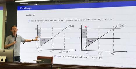 在汇报主体部分之前,许梦涵老师以现实生活中的超低价跟团游和特价机票中存在的隐藏消费为例引出报告主题:如果在交易机制中,允许卖方在支付一个固定成本的条件下可以对买方违约时,这种违约可能性的存在不一定是件坏事,其可能会提升社会福利水平,因而对卖方不诚信行为的严刑峻法未必一定是件好事。