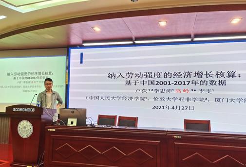 2021年4月27日,厦大经济学系双周论坛(第九讲)如期举行。经济学院和王亚南经济研究院助理教授高岭老师报告了其与伦敦大学亚非学院卢荻老师等合作撰写的论文《纳入劳动强度的中国经济增长核算:基于2001-2017年的数据》,论坛吸引了经济学科师生前来聆听,经济学系助理教授许梦涵老师为本次学术论坛主持。