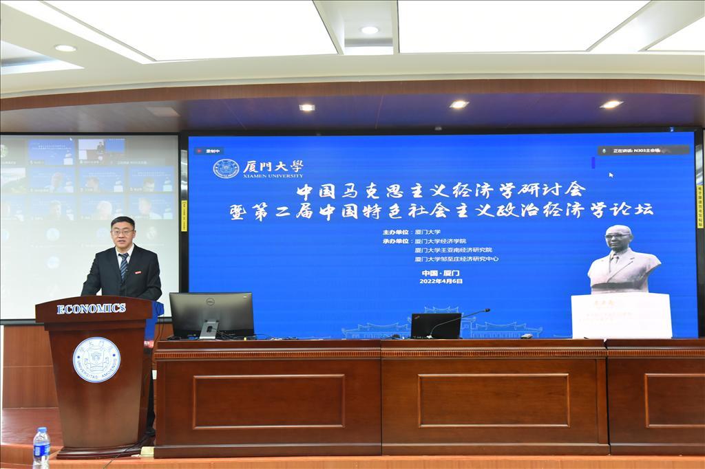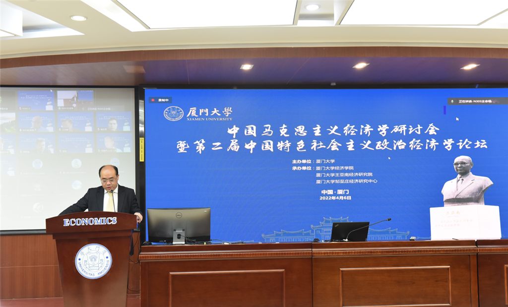 2022年4月6日,由厦门大学主办,厦大经济学科承办的中国马克思主义经济学研讨会暨第二届中国特色社会主义政治经济学论坛在线上举办,厦门大学经济学院和王亚南经济研究院副院长(主持工作)周颖刚教授主持开幕式。今天是厦门大学建校101周年纪念日,在追思、感恩的节日里举办此次会议,是为了纪念我国著名马克思主义经济学家和教育家、厦门大学故校长王亚南先生。