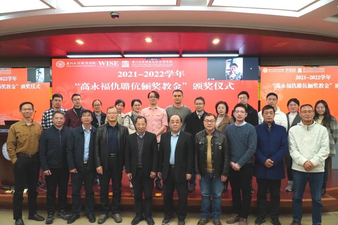 2月17日下午,厦门大学经济学院经济学系2022年首届“高永福仇璐伉俪奖教金”颁奖仪式在经济学院N302举行。本次颁奖仪式由经济学系主任张兴祥教授主持。参与本次颁奖仪式的有“高永福仇璐伉俪奖教金”的发起人之一——1999级经济学系校友仇璐,经济学院党委书记黄鸿德,经济学院、王亚南经济研究院副院长(主持工作)周颖刚教授,经济学院党委副书记杜海林以及经济学系全体教师。